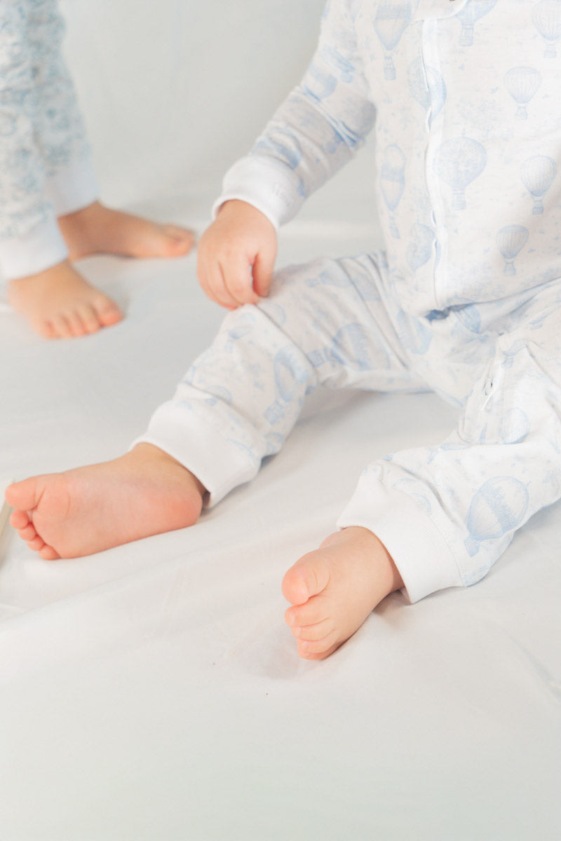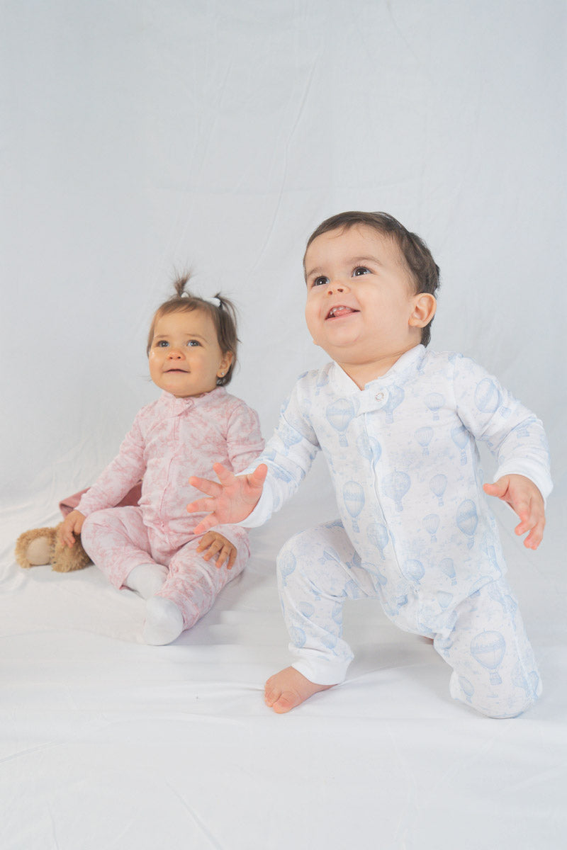 Hecha en 100% algodón Pima, la pijama Globos invita a elevar los sueños y dejarse llevar por la imaginación. Su dulce estampado de globos aerostáticos y suaves nubes transmite ligereza y tranquilidad, creando un ambiente perfecto para un descanso profundo y lleno de ternura. Su tejido suave, transpirable y respetuoso con la piel sensible del bebé garantiza comodidad durante toda la noche. Ideal para soñar con cielos despejados, aventuras entre las nubes y viajes mágicos al país de los sueños. 🎈☁️💤